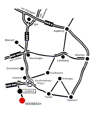 Von der Autobahn A7 aus Richtung Ulm, München oder Füssen fahren Sie bis zum Allgäuer Dreieck Ausfahrt Nr. 136, von hier fahren Sie auf die A98 in Richtung Oberstdorf - Lindau.